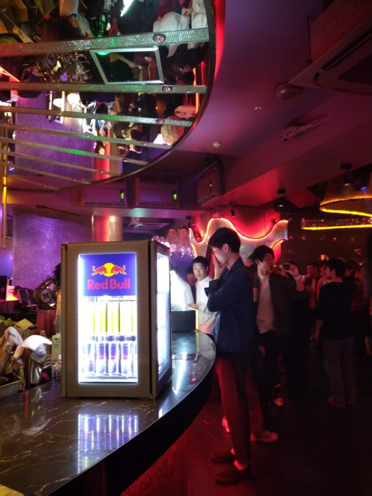 メインフロアに入ったらとりあえずバーカウンターでソフトドリンクを買おう。