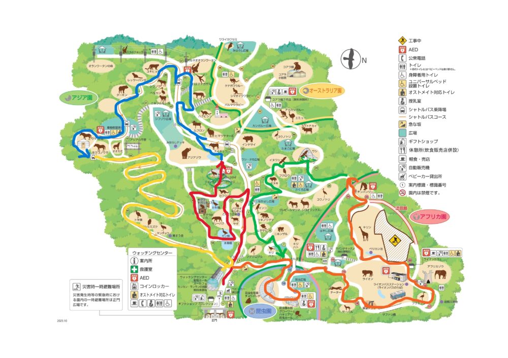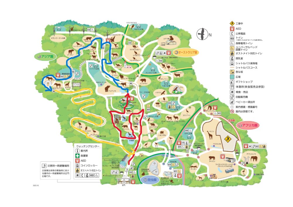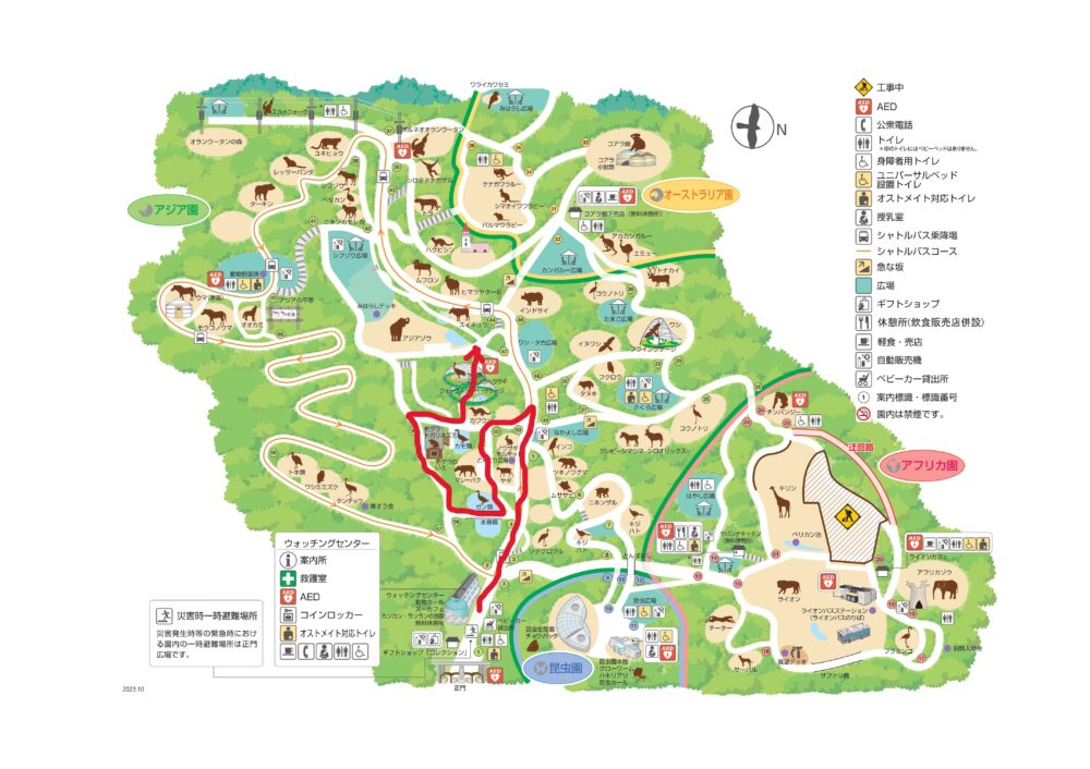 中盤:昆虫館🐜、チーター🐆、サーバル🐈、ライオン🦁、象🐘、キリン🦒、チンパンジー🐵