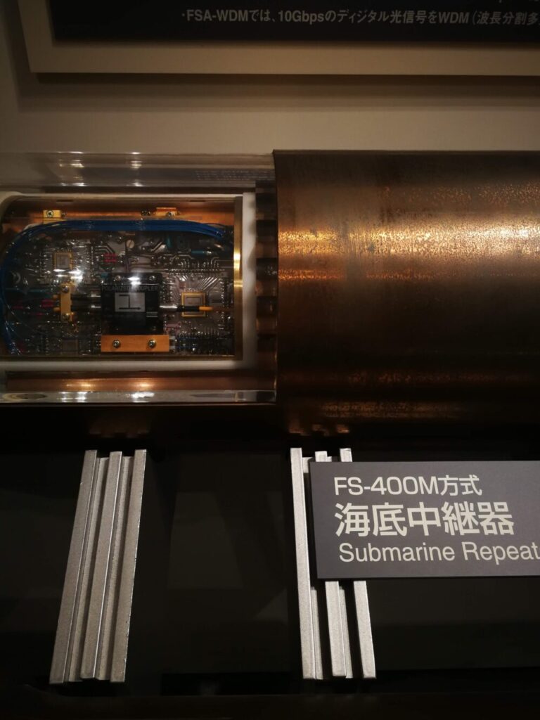 たとえば現在も、大陸と我々日本を情報分野でリアムタイムにつないでいる海底ケーブルの断面図の展示だ。